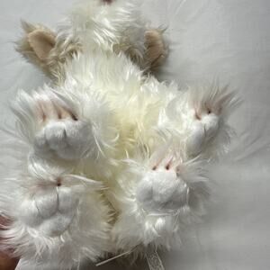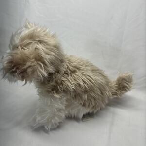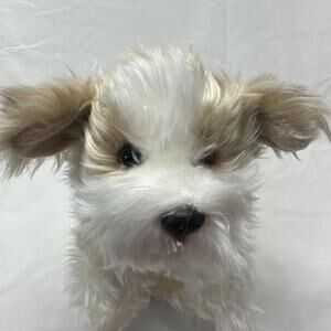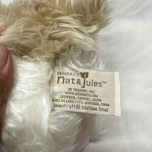 The Demdaco Nat & Jules Brown White Dog Puppy 11”plush and 8 Tall toy is an stuffed baby toy from 2011. It is a soft and cuddly toy perfect for babies, featuring the brand Nat & Jules and a cute dog and puppy theme. The brown and white color scheme adds to the realism of the plush toy, making it a charming addition to any baby's collection. With its unisex design, this toy is suitable for both baby boys and girls.