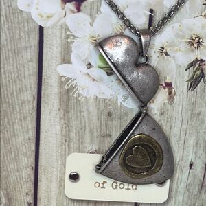 Demdaco Silver and Gold Tone Brass Heart Locket Necklace with Box