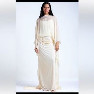 This stunning ivory gown features elegant ruched detailing and a chiffon overlay. This dress is perfect for a special occasion! Open to offers! 🤍