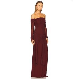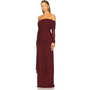 Deme by Gabriella Heloise Dress in Burgundy Elegant Burgundy Off-Shoulder Dress