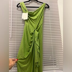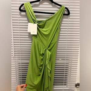 Step out in style with this stunning green one-shoulder dress. Perfect for any occasion, this dress offers a flattering fit and a chic design.