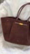 Exterior: Double top handles, metal feet, unique triangular fold design, foil embossed DeMellier logo.
