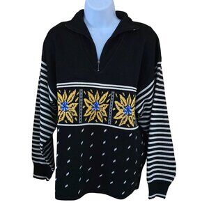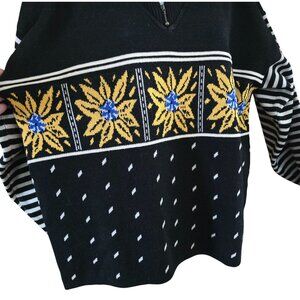 Demetre vintage 30% wool blend Black Knit Sweater Sunflower & Stripe cottagecore
