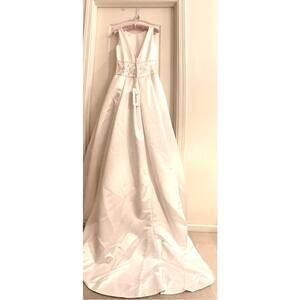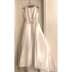 Demetrios Sleeveless White Satin Wedding Ball Gown with Bustle and Veil Size 10