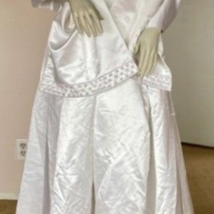 Old world romance defines beautiful strapless gown with detachable train that can be used as a cape. From form-flattering mermaid silhouettes to lavish ball gowns, the Alta Moda Collection embodies true bridal luxury and craftsmanship. It was a sample worn only once. No alterations made.