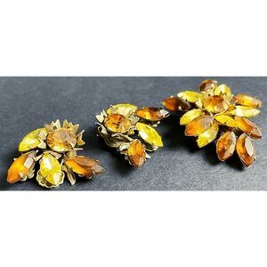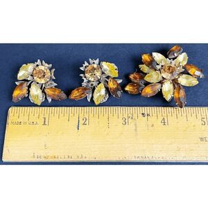 Demi Parure Vintage 50s Rhinestone Brooch & Clip-on Earrings Topaz