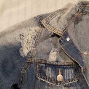 Bleach wash denim jacket wore once and from a pet free and smoke free home.