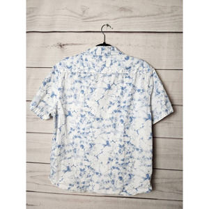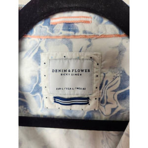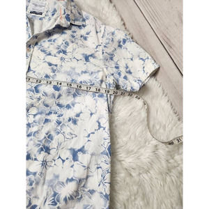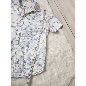 Demin & Flower Mens Button Down Shirt White Blue Floral Short Sleeve Collar L