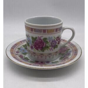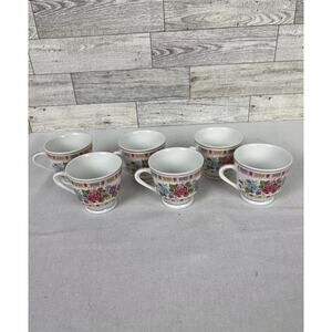 Demitasse Cups & Saucers Set Of 6 Pink Floral Porcelain Vintage Made In China