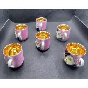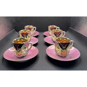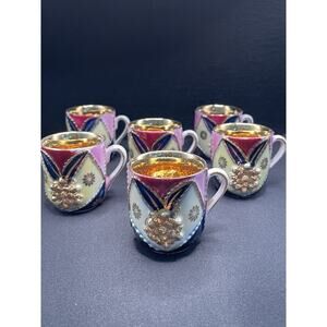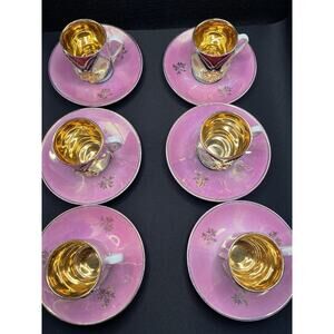 Vintage Lusterware Demitasse Set of Six (6) Espresso / Tea Cups & Reticulated Saucers.