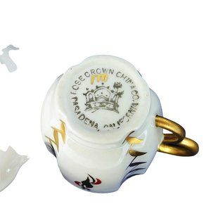 Demitasse Tea Cup and Saucer Rose Crown China Co Pasadena CA, Vintage Gold Red