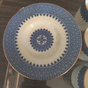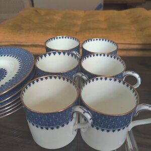 Perfection is apparent in the geometric design of these small demitasse cups and saucers. For those that appreciate Expresso and Turkish coffee, these are a must have. A great opportunity to own this rare Wedgewood set. This is a set of Wedgewood Lynnlin cups and saucers dating from 1908-1920 of fine bone china.