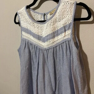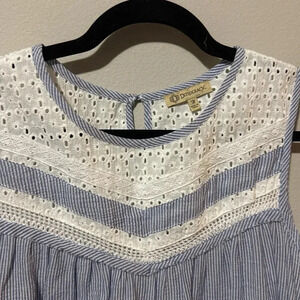 Beautiful 100% cotton tank by Democracy. Blue with white eyelet lace detailing. Medium. Excellent condition.