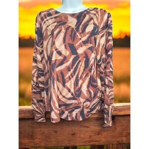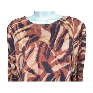 Democracy 1X Sweater Brown Beige Tiger Striped Crew Neck Cotton Long Sleeves