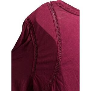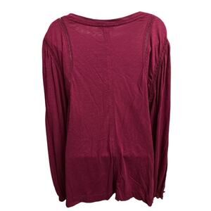 Democracy 1X Top Purple Wine Cotton Modal Crochet Ruffle Smock Cuffs Long Sleeve
