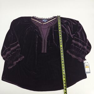 Democracy 3/4 Blouson Top Blouse Womens 3X Embroidered Velvet Boho Witchy Fairy