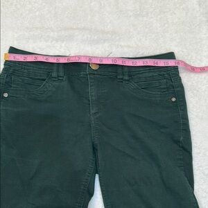 These Democracy jeans boast a striking green hue and a sleek skinny fit, providing a chic and contemporary silhouette. The denim's smooth texture enhances their versatility, making them a stylish choice for various occasions.