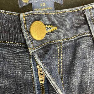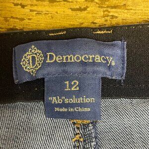 Democracy "Ab" Solution Distressed Flare Jeans High Rise Blue Sz 12 Raw Edge