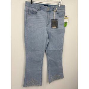 Democracy Ab Solution High Rise Cropped Flare Jean Embroidered Hem 14 NEW