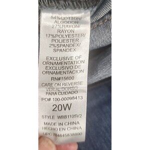 Elevate your denim game with these stylish and comfortable Democracy Ab Solution Jeans. Crafted from a blend of polyester, spandex, cotton, and rayon, these jeans feature a solid pattern and a medium fabric wash that gives them a classic and timeless appeal. The high-rise waist and ankle length make them perfect for any occasion, while the zip and button closure and pockets add functionality and style. These jeans are ideal for women who wear a plus size (20W) and come in a beautiful shade of blue that will match any outfit. The denim fabric type and western theme make them versatile enough for any season, whether it's summer, fall, winter, or spring. With their slimming and stretchy features, these Democracy Ab Solution Jeans are a must-have in any wardrobe. Excellent Preowned condition with no flaws.
