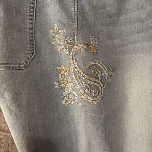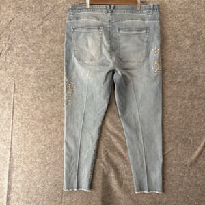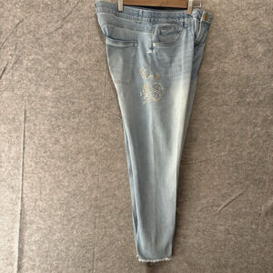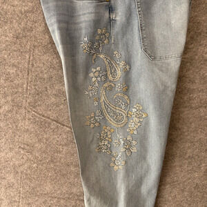 Democracy Ab Solution Jeans Womens Sz 16 Blue Embroidered Paisley Raw Hem