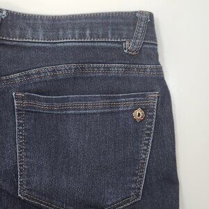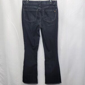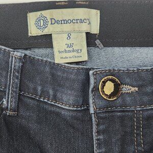 "Ab" Technology Bootcut Jeans from Democracy in a women's size 8. Dark blue wash. Normal wear from gentle use and wash. Wear at the front button hardware.