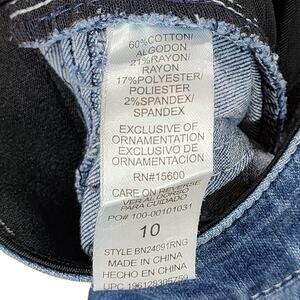 Democracy Ab Technology Skinny Jeans sz 10 Womens Medium Blue Factory Faded Distressed