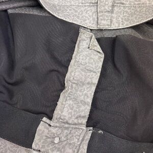 Gently pre-owned and in great shape. These gray jeans have a tone on tone very subtle animal print. The are 5 pocket classic style zip and button closure and tapered leg with the bonus of the “ab solution” panel in front for slimming. Cotton spandex with just the right amount of stretch.