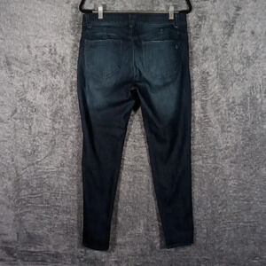 Democracy The Ab solution jeans. They Have the stretch band on the waist...they have acidy wash.  there in color dark blue.  there in good condition...approx measurements Rise:10" length 29" long. size 10 women