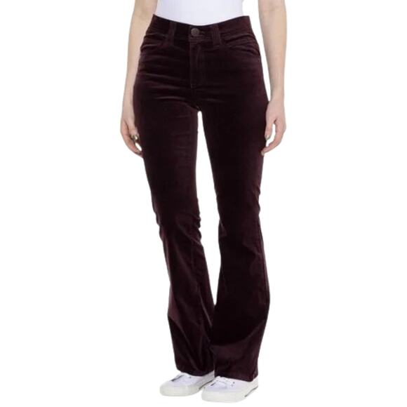 Democracy AbSolution Maroon Stretch High Rise Flare Bootcut Velvet Pants 12
