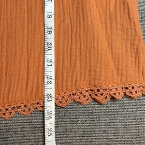 Democracy Above Elbow Bubble Sleeve Square Crochet Neck Woven Top Sz XL