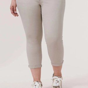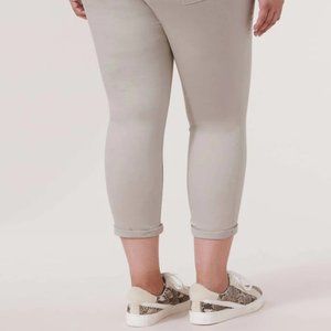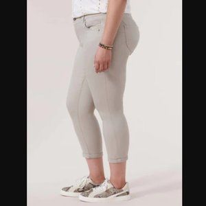 Spice up your look with these stretchy ankle skimmer pants in plus sizing constructed with our signature mold-and-hold "Ab"solution® fit technology featuring interior power mesh panels that flatten your tummy and a no-gap elastic waistband. Booty lift fit included!