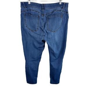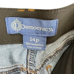 Excellent preowned condition. Democracy "Ab"solution Elastic Waistband Medium Wash Medium Rise Jeans. Zipper/button closure. 5-pocket design. Cotton/rayon/polyester/spandex material. Approx. measurements: Waist 34", inseam 26", rise 10.5". Size 14P.