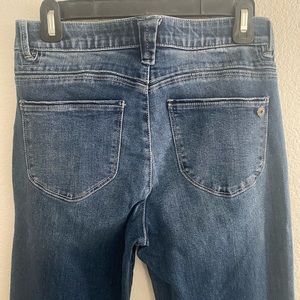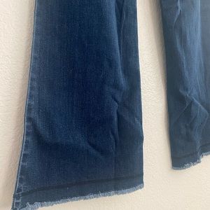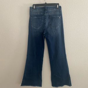 A high rise flared denim pant with zip fly button closure and 5 pockets. Size 2