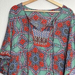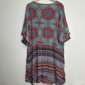 Democracy Abstract Multicolor Boho Midi Pullover Dress CoverUp Womens Size 2X