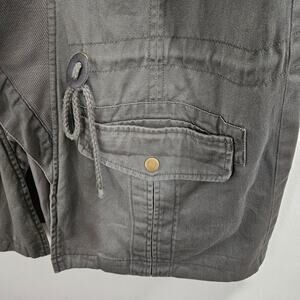 Green army cargo vest by Democracy. Women's size Medium. Fully lined, 2 front pockets, large collar. Drawstring waist, no closure. Excellent condition.