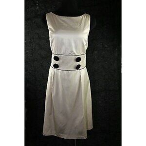 Democracy Beige Silky Sleeveless Black Button Accent Dress 10 Medium