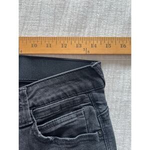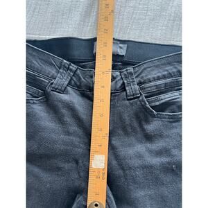 Black skinny jeans from Democracy with lots of stretch included a stretchy waistband. Distressed details with washed black denim fade.