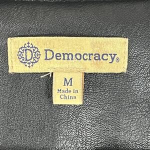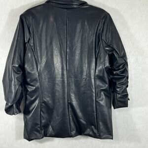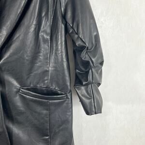 Democracy Black Faux Leather Coat Jacket Blazer, Ruched Sleeve Black Medium