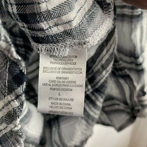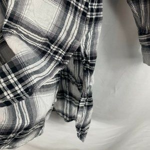 Democracy Black White & Silver Long Sleeve Button Down Split Hem Shirt Size L