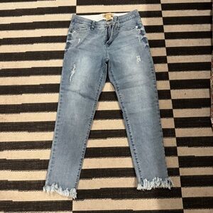 Democracy Blue Ankle Cropped Jeans with Distressing