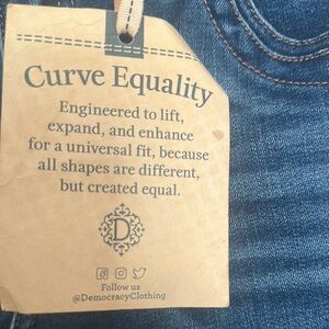 These Democracy blue skinny jeans feature a sleek tapered leg design, perfect for a modern and stylish look. The medium to dark blue wash offers a classic denim appearance, ideal for versatile wear. With a subtle faded finish, they provide a comfortable and relaxed fit.