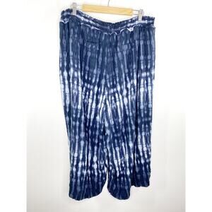 Democracy Blue White Tie Dye Smocked Elastic Waist Pants Women's Plus Size 3X