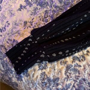 Stylish blue turtleneck sweater with white patterns. Perfect for a chic look. Super soft with puff sleeves