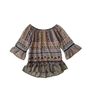 Democracy Bohemian Multicolored Ruffled Bell Sleeve Peasant Blouse Women's Small