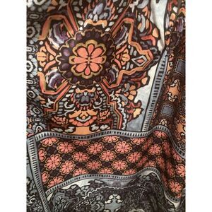 Democracy Boho Peasant Shirt Balloon Sleeves Orange Blue Geometric Floral Large