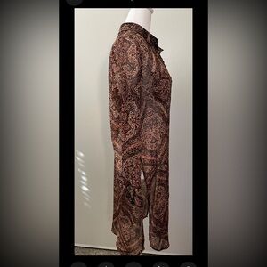 Democracy Boho Sheer Long Shirt Dress Button Front Medium Beautiful Fall Tones