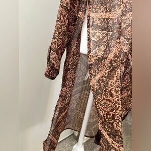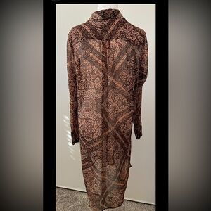 Democracy Boho Sheer Long Shirt Dress Button Front Medium Beautiful Fall Tones