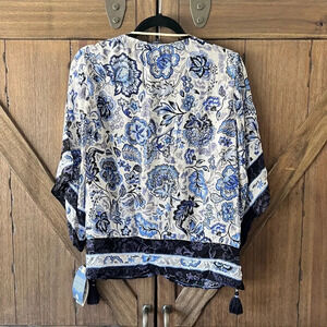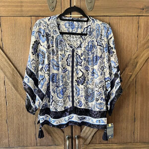 Democracy Boho Short Sleeve Blouse with Tassels Size XS NWT