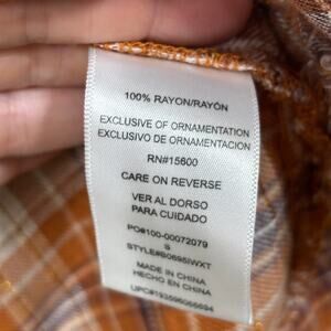 Democracy Brown White Plaid Fringe Button Shirt Small Western Boho Cottagecore